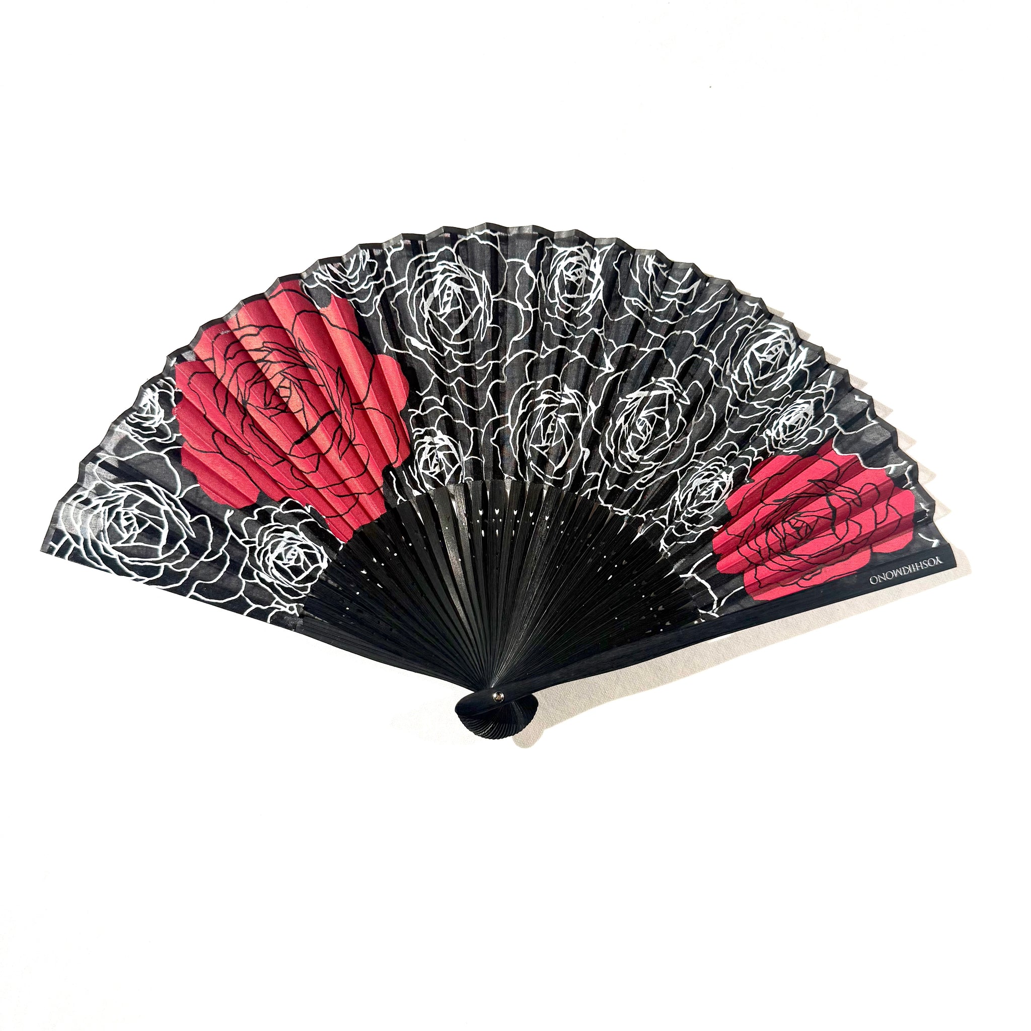 深みのある赤に、線で描かれたバラが上品に映える扇子です。バッグに収まりやすいサイズで、普段使いしやすい実用性も備えています。ご自身用にはもちろん、季節の贈り物としても選びやすい一品です。