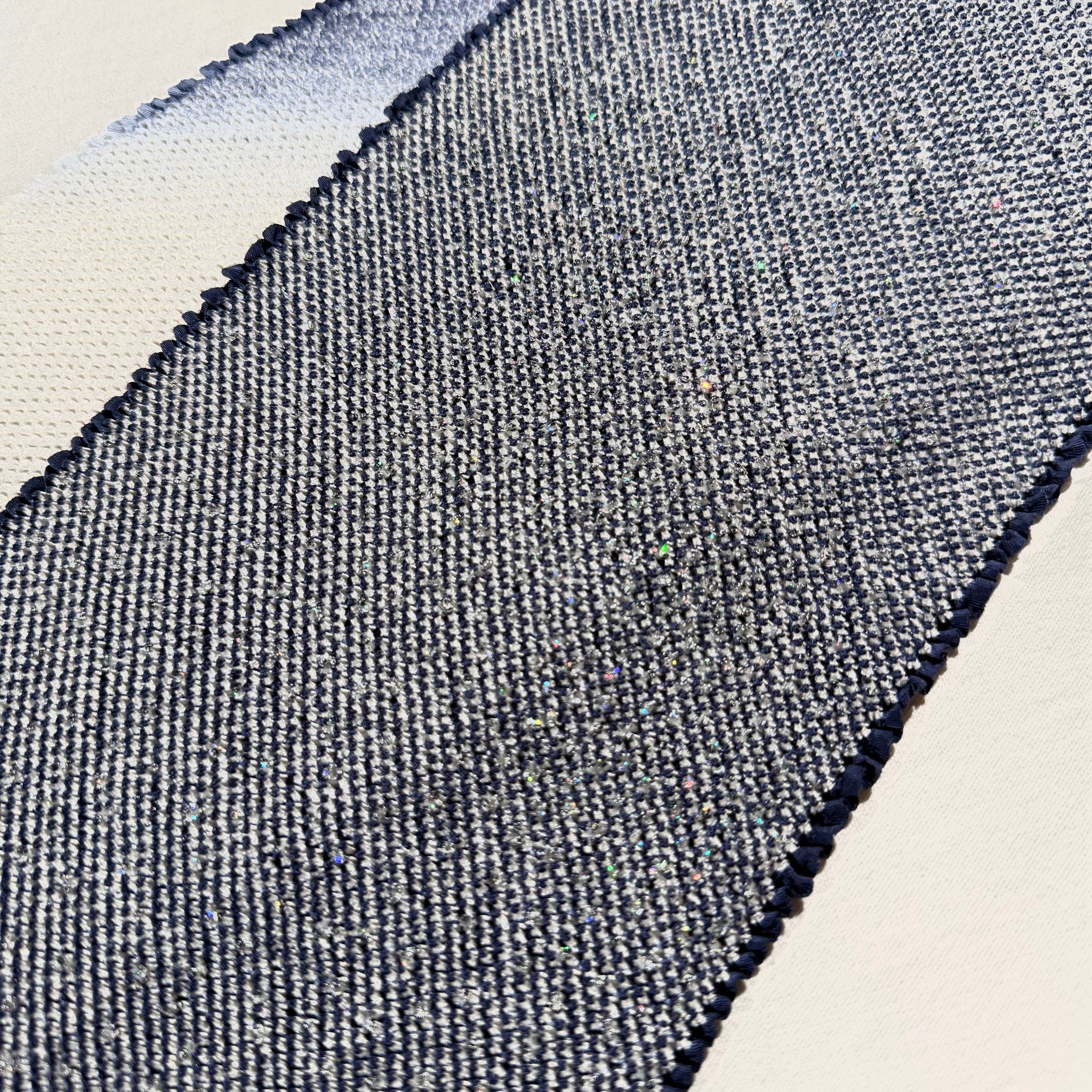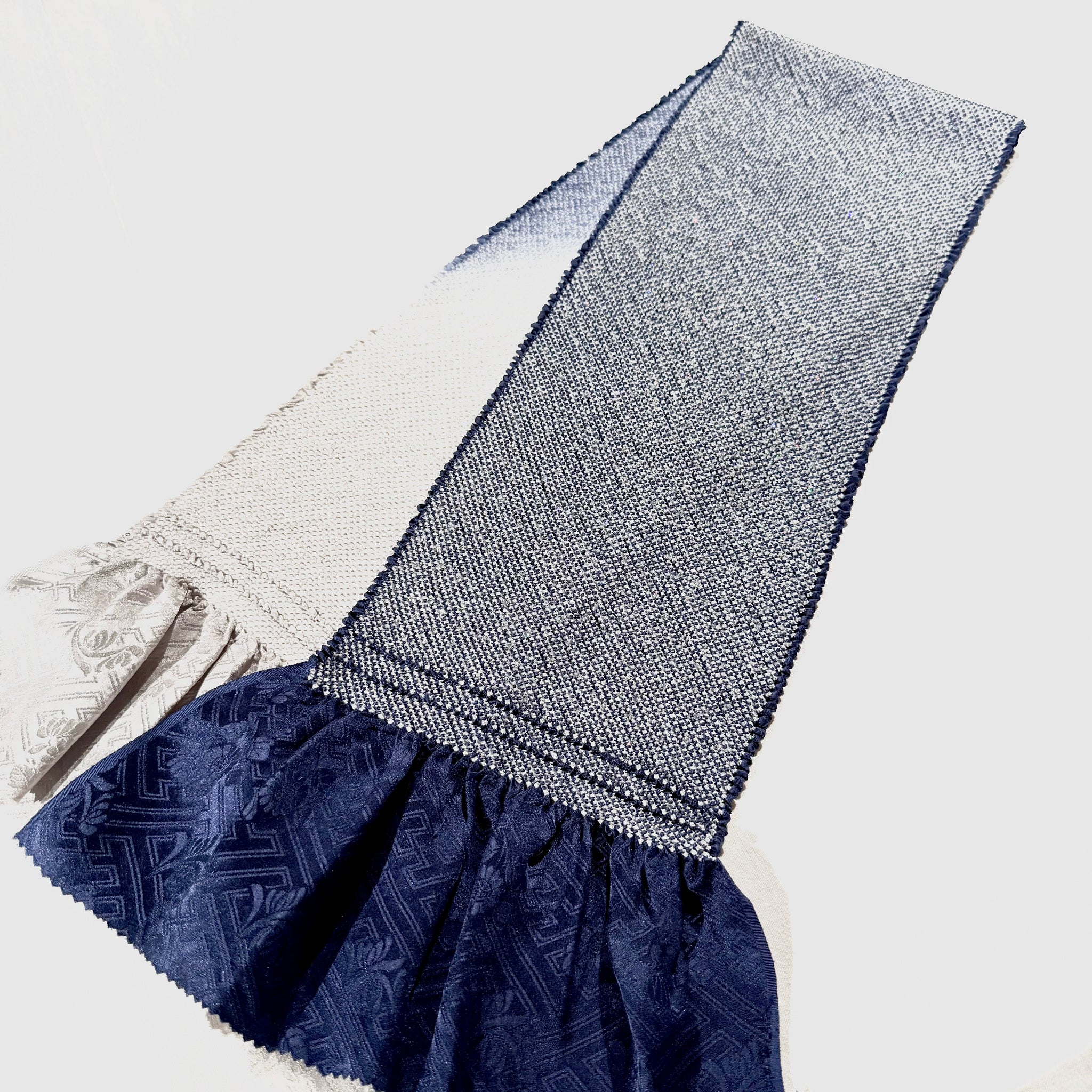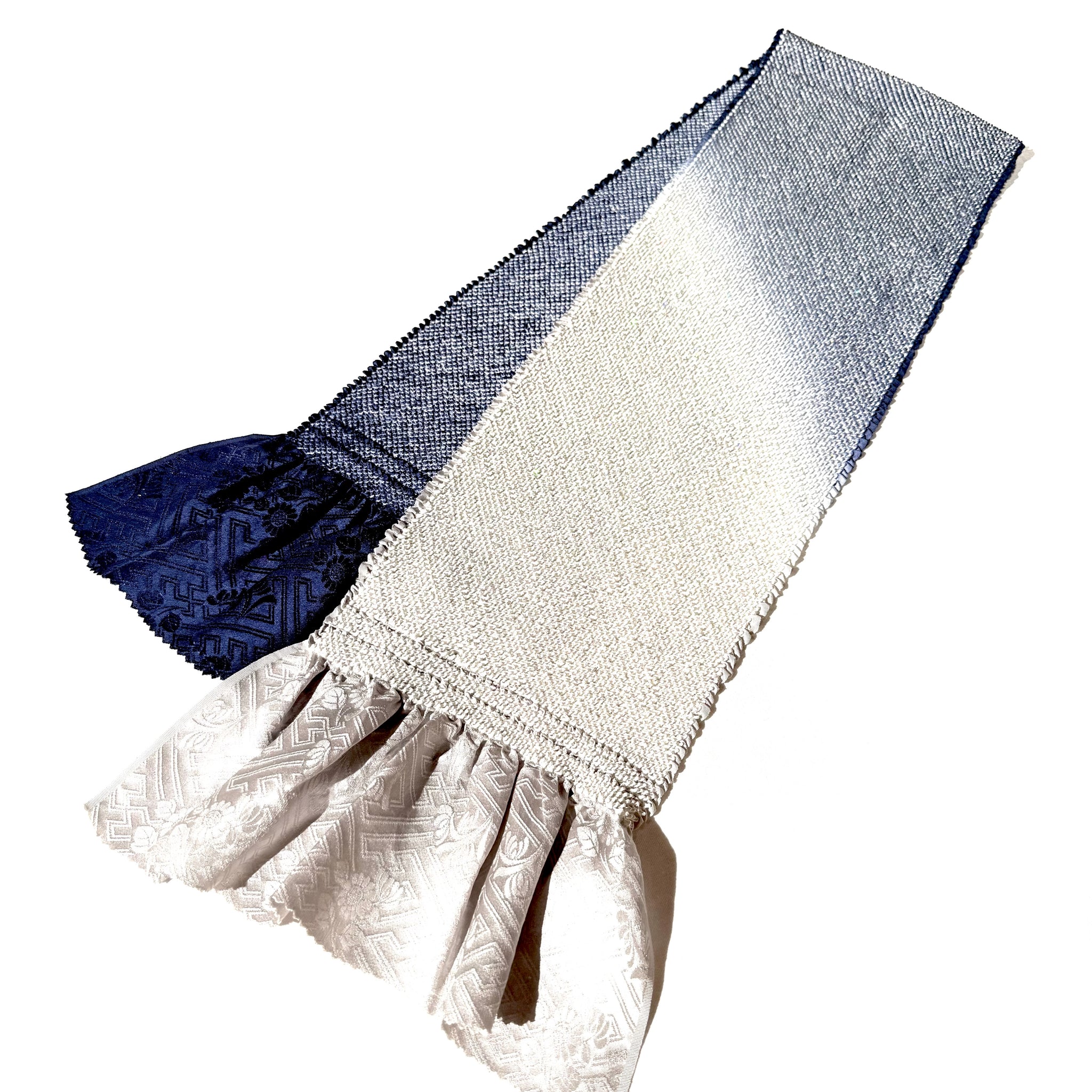 密に寄せた絞りの凹凸に、淡いグレーから青へと移ろう色合いが