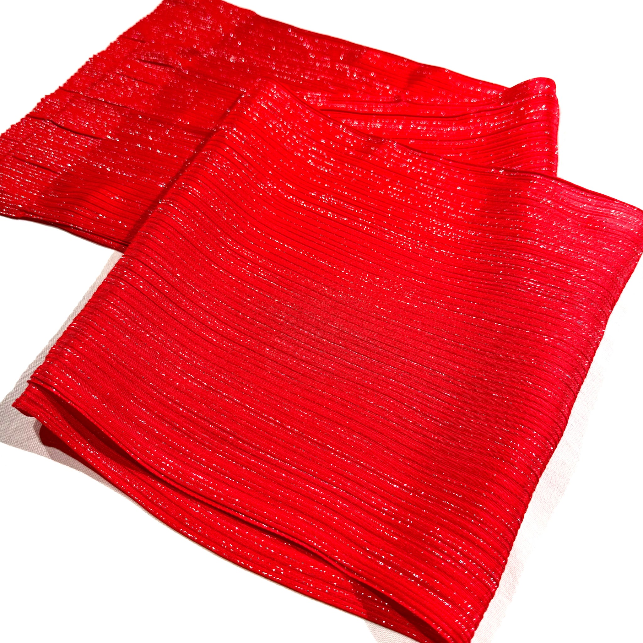 絹のなめらかな生地に、銀糸を横段に織り込んだ帯揚げです。絹の光沢と赤の深みが重なり、落ち着いた華やかさを演出します。フォーマルシーンにもふさわしい、洗練された一枚です。