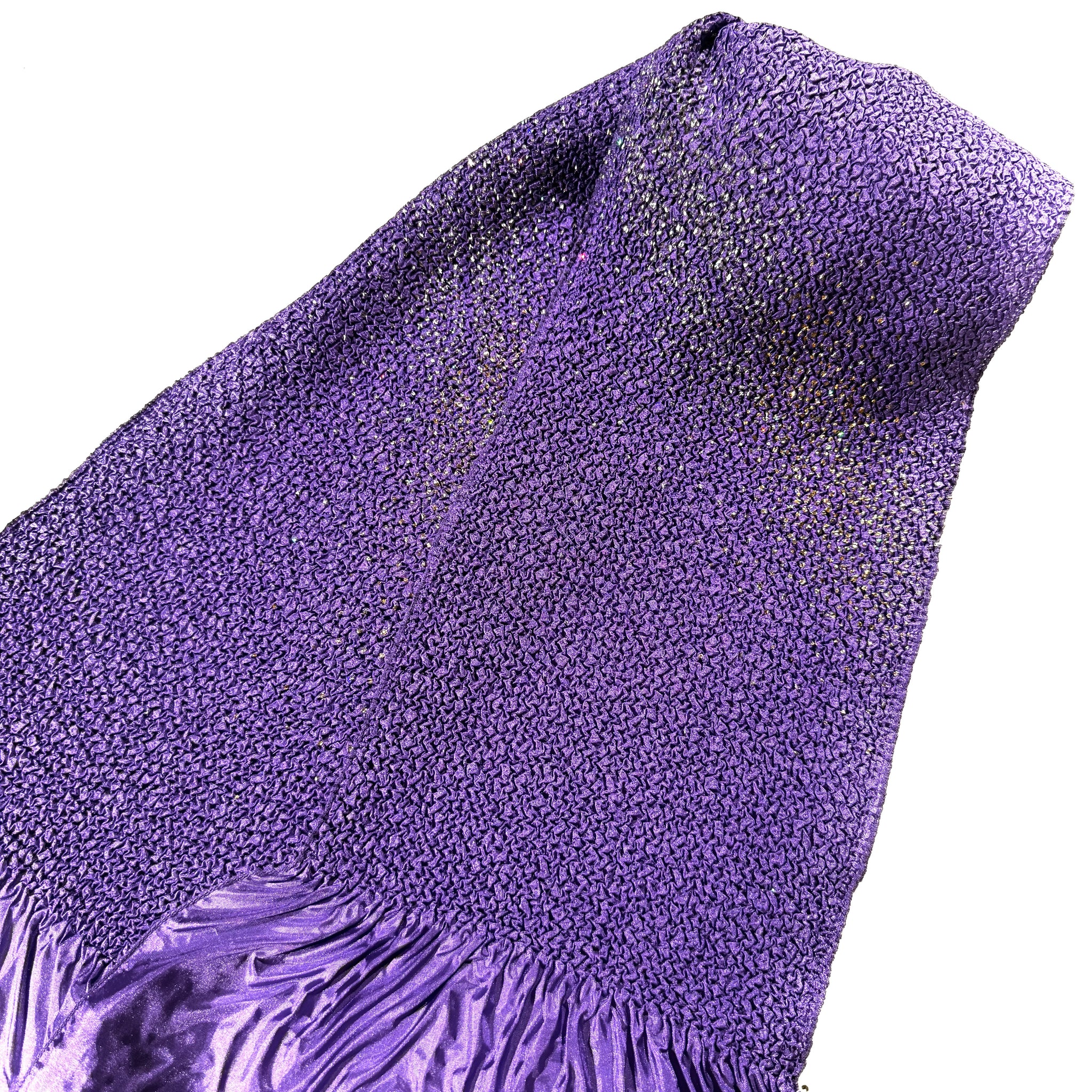 絹の柔らかな絞り地に、シルバーとゴールドのラメを散りばめた帯揚げです。控えめなきらめきが帯まわりに上品な華やかさを添え、、帯まわりに気品ある表情を添えます。特別な日の装いにもふさわしい、エレガントな一枚です。