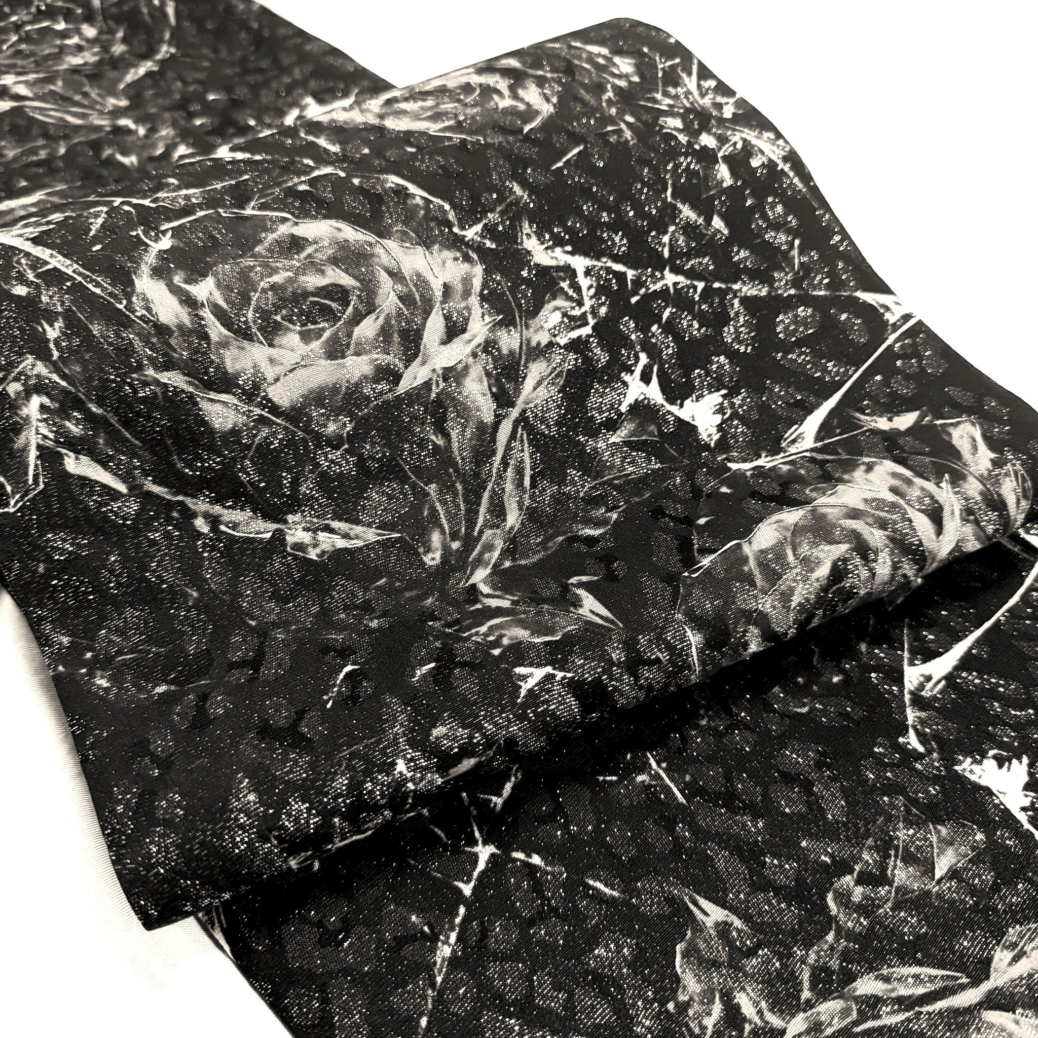 透明感のあるラインで描かれたバラが、漆黒の背景に浮かび上がり、